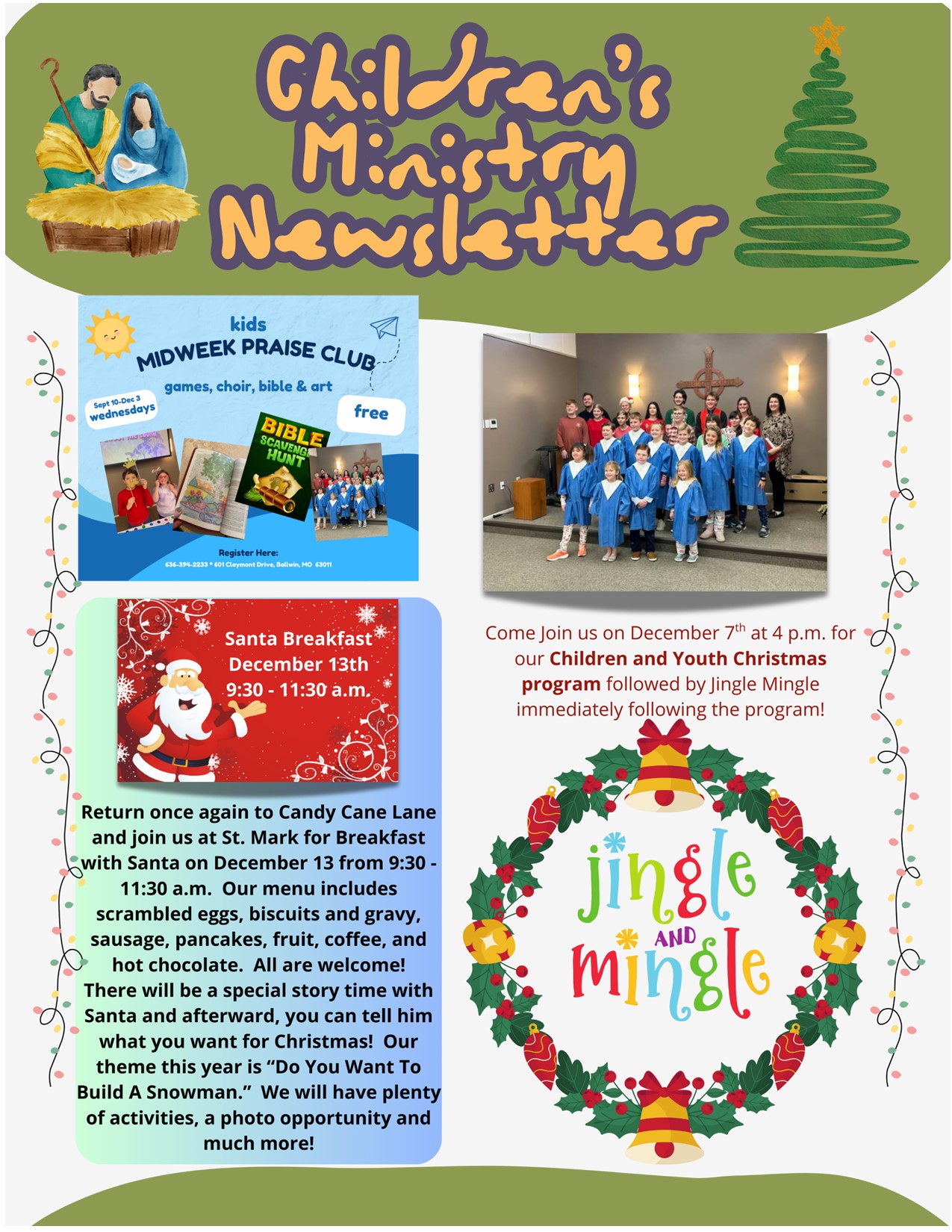 Director of Children’s Ministries: Ms. Latisha Gilliland (636) 394-2233 or lgilliland@discoverstmark.org