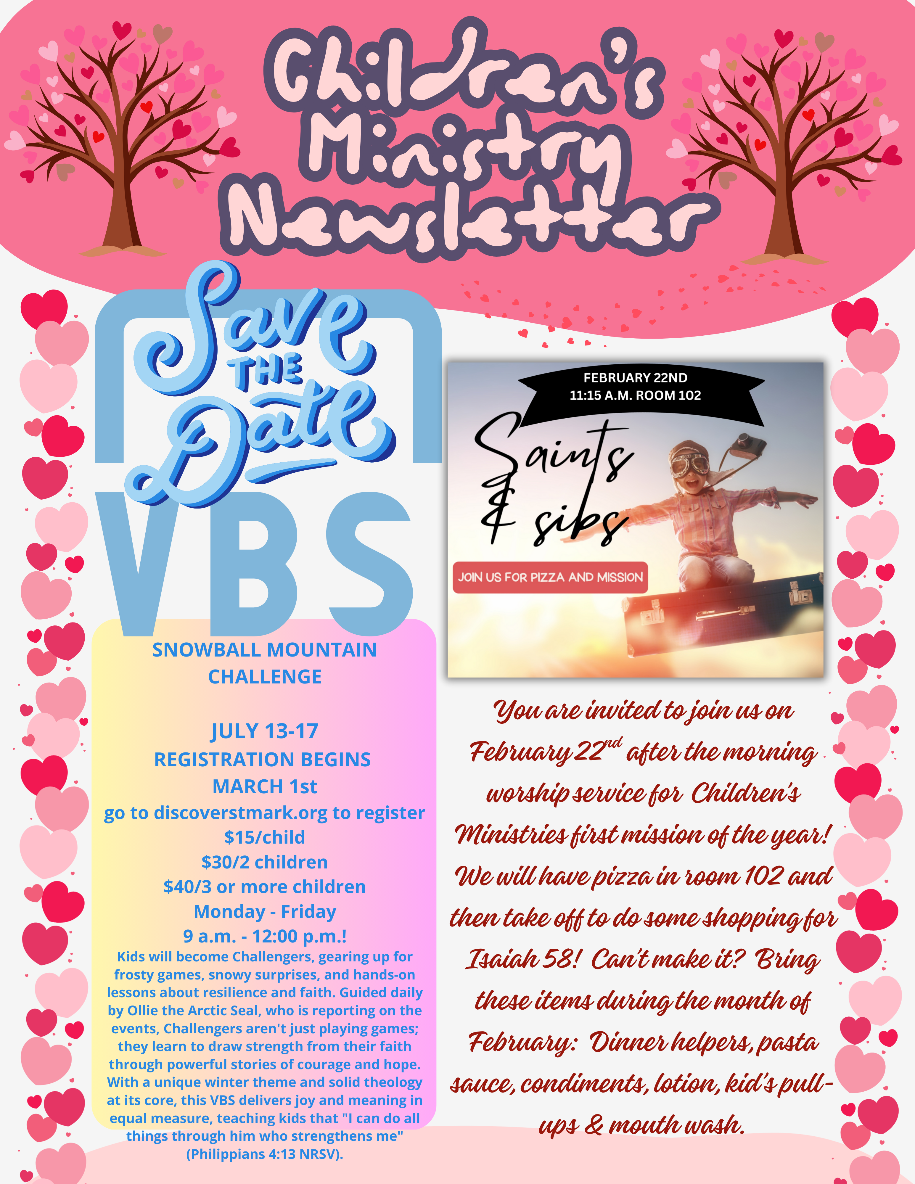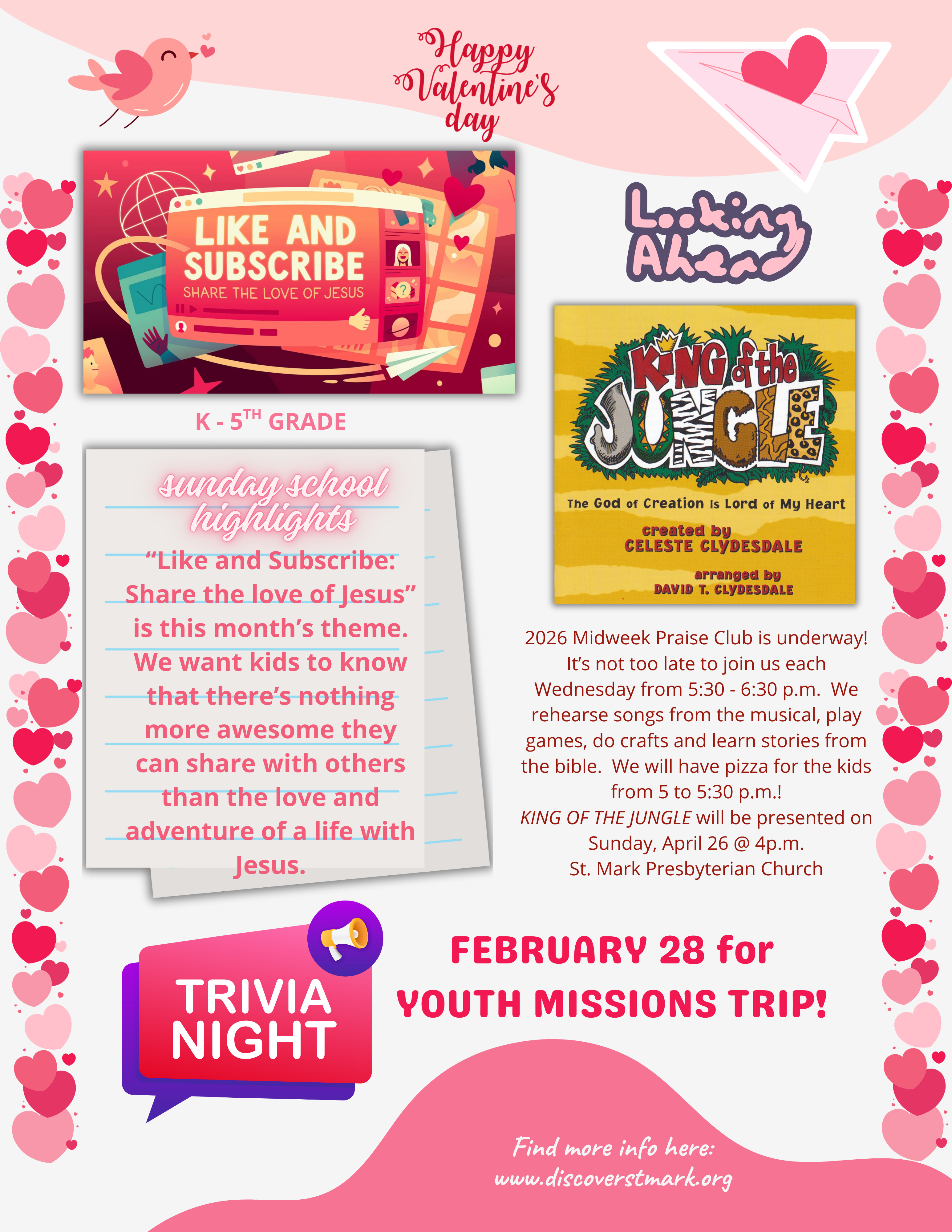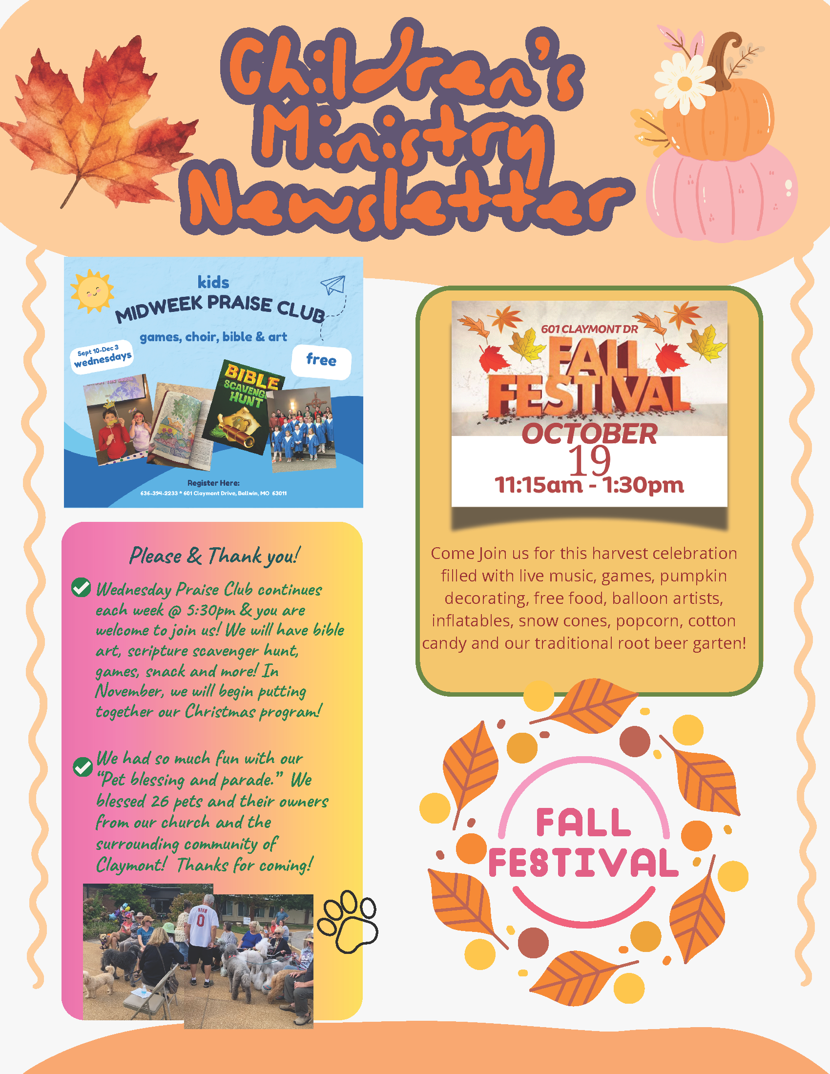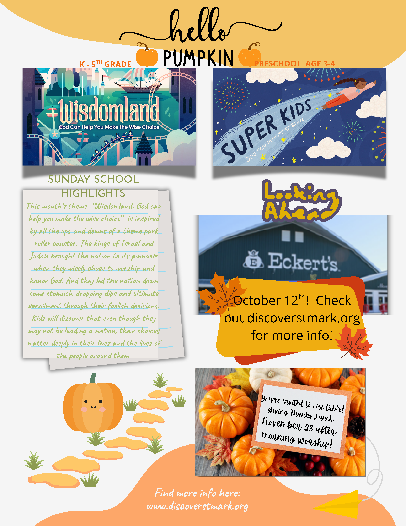 Director of Children’s Ministries: Ms. Latisha Gilliland (636) 394-2233 or lgilliland@discoverstmark.org