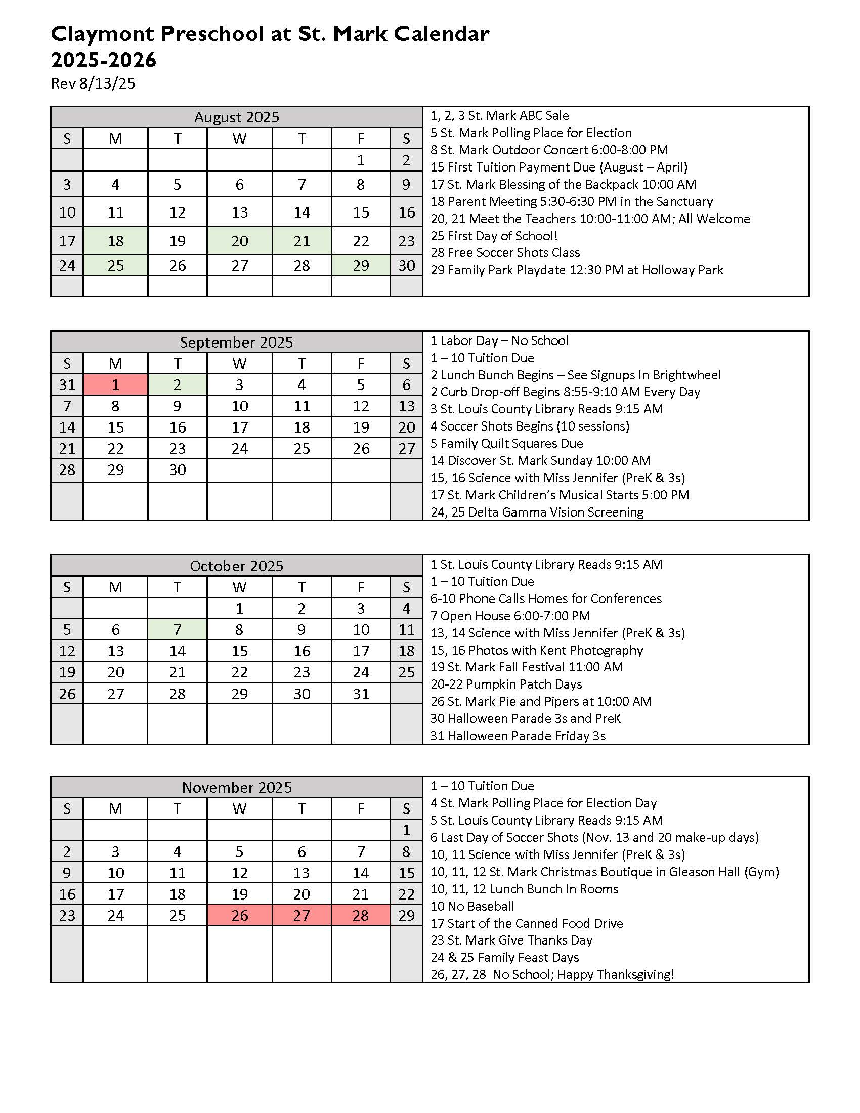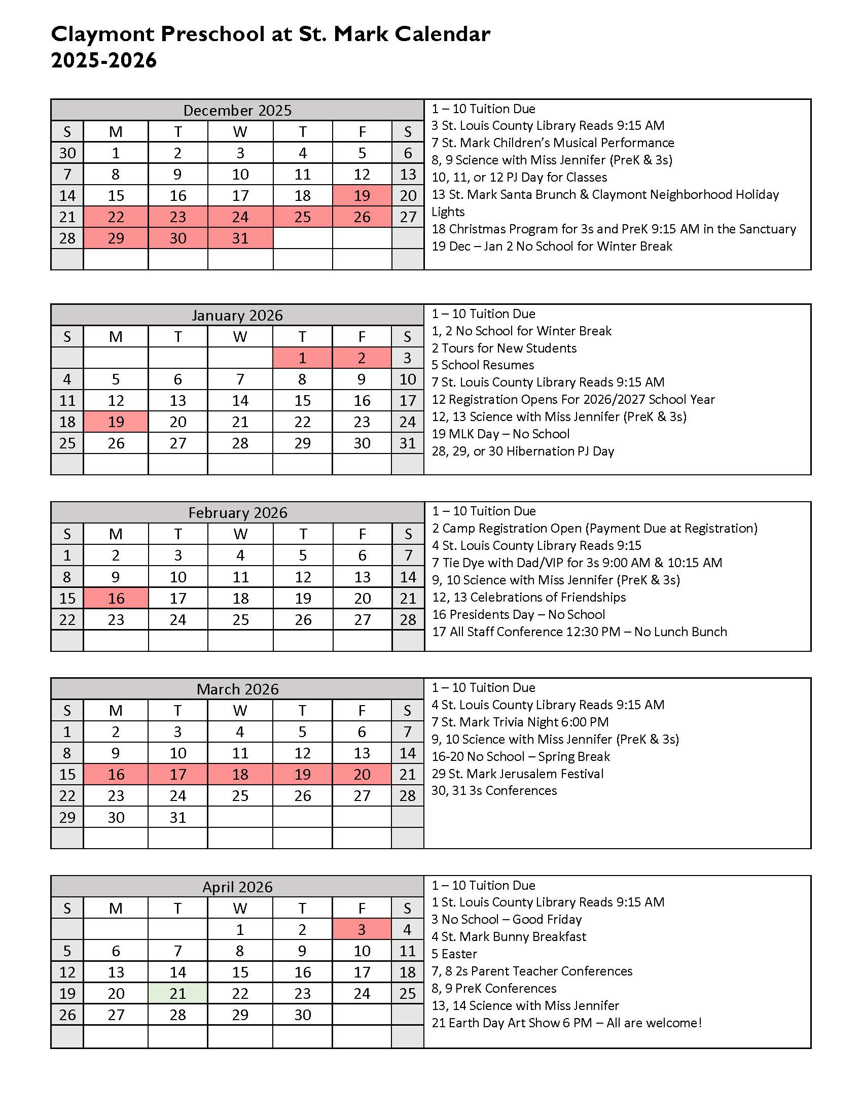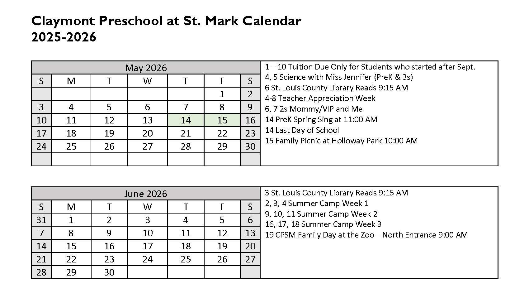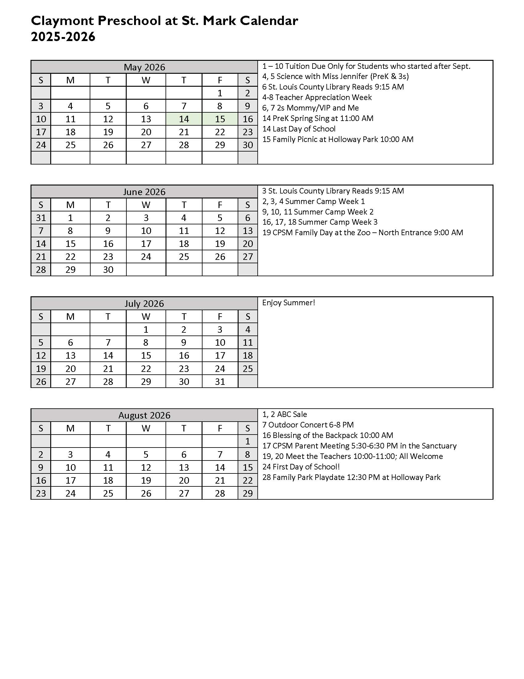 Thank you for another wonderful and memorable year!! The longer we stay at St. Mark, the more it pains me to move on and go to “big kid” school. Claymont Preschool has such a wonderful and exceptional staff whose passions for what they do are very obvious. When I drive away, I’m comforted knowing they’re in the most loving hands I could ask for. Thank you for the kindness and patience and love shown our children. We are so grateful! Kristen Melter